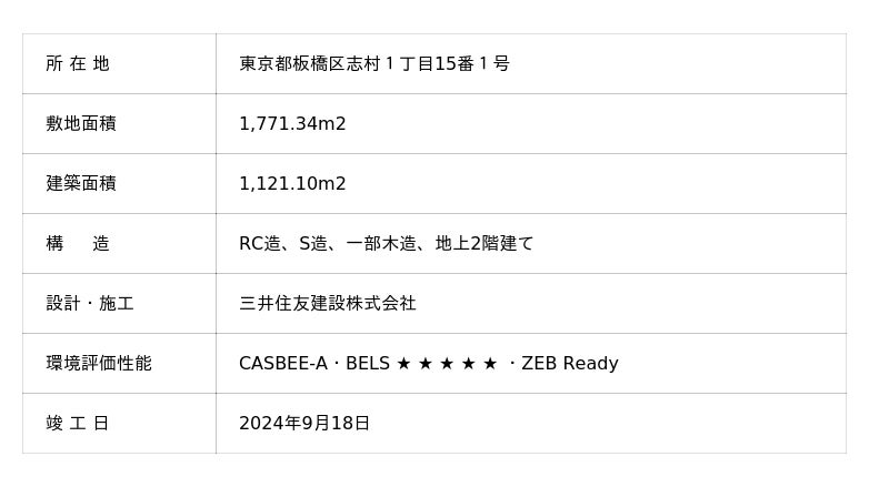 構造面では、鉄筋コンクリート造(RC造)、鉄骨造(S造)・一部木造を組み合わせ、耐震性と快適性を確保。屋根には木造トラスを用い、自然光を取り入れるトップライトを設けることで、日中の照明使用を抑え、省エネルギー化を実現しています。また、国産木材や間伐材を積極的に活用し、環境負荷低減にも寄与しています。