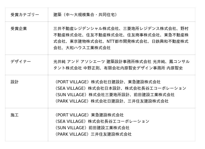 三井不動産レジデンシャル株式会社(本社:東京都中央区、代表取締役社長:嘉村 徹)は、公益財団法人日本デザイン振興会が主催する2025年度グッドデザイン賞(※1)の「建築(中~大規模集合・共同住宅)」カテゴリーにて、「HARUMI FLAG」、「パークコート成城六丁目」、「パークホームズ南池袋」、「パークホームズ市川真間」、「CENTRAL AIR CITY RESIDENCEI」、「パークホームズ京都二条城」、「パークウェルステイト幕張ベイパーク」の7プロジェクトが受賞したことをお知らせいたします。