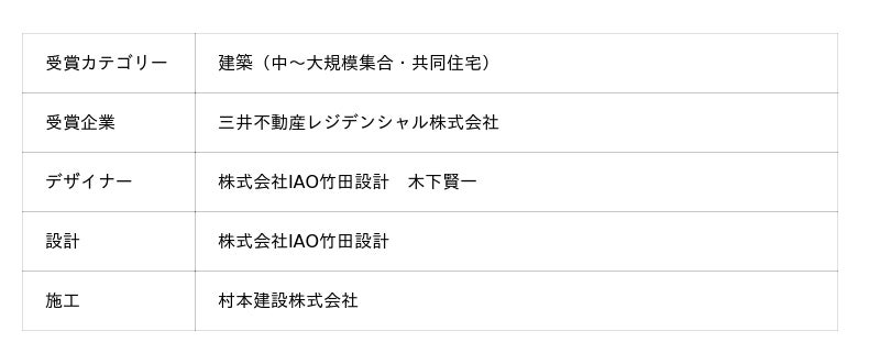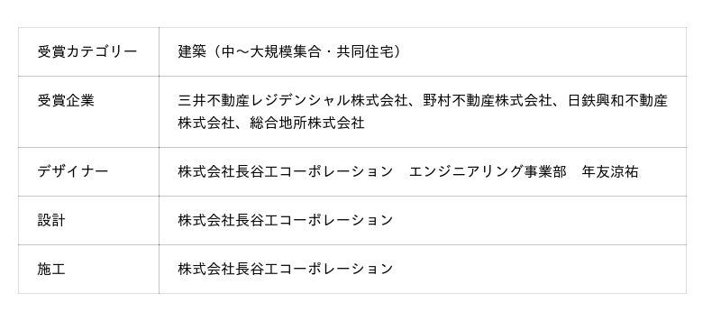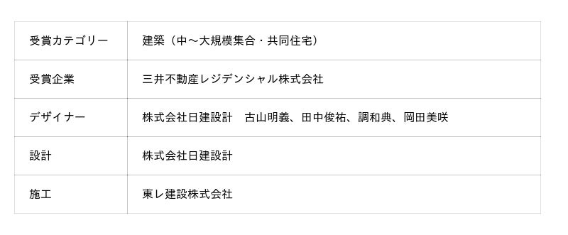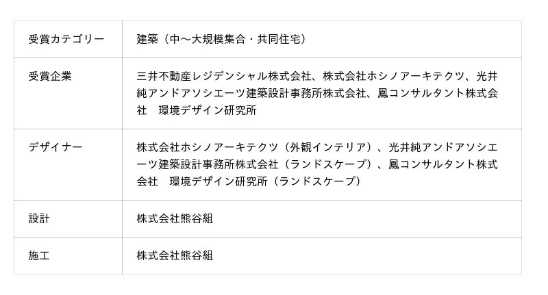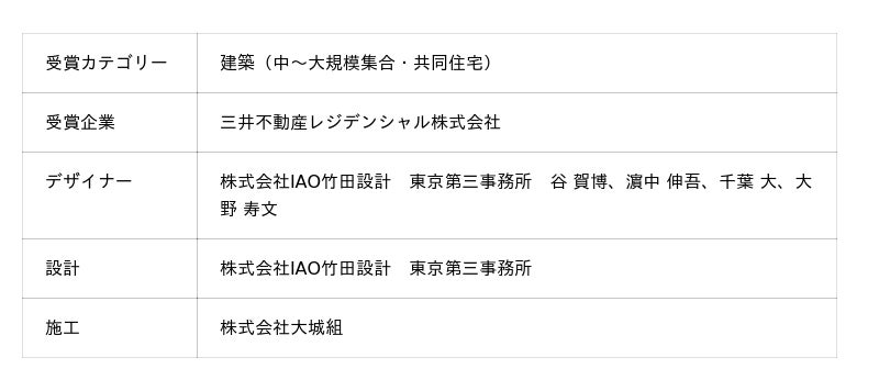 ※2: 2000年に分譲マンション初のグッドデザイン賞を受賞した「麻布霞町パーク・マンション」「センチュリーパークタワー」(売主:三井不動産株式会社)より、26年連続の受賞です。