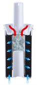 (赤色矢印)水道水(原水) (水色矢印)浄水