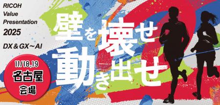 リコージャパン株式会社(社長執行役員:笠井 徹)は11月18日(火)~11月19日(水)、「DX&GX~AI “壁を壊せ 動き出せ”」をコンセプトに、お客様の課題解決のためのセミナーやExhibition(展示)を行う「RICOH Value Presentation 2025」を吹上ホール(名古屋市)にて開催いたします。