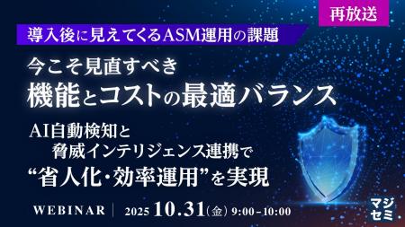 マジセミ株式会社は「【再放送】【導入後に見えてくるASM運用の課題】今こそ見直すべき、機能とコストの最適バランス」というテーマのウェビナーを開催します。