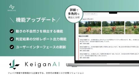 AI総合研究所として活動するNABLAS株式会社 (本社 : 東京都文京区本郷、 代表取締役 所長 : 中山 浩太郎、 以下「当社」)は、AIによるフェイク情報や誤情報を検出する自社サービス「KeiganAI」の動画検出機能において新たな分析機能を追加し、巧妙化するフェイク動画への対応力を強化いたしました。これにより、動画コンテンツの真贋判定において、より詳細で多角的な分析が可能となります。