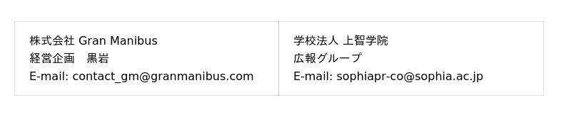 株式会社Gran Manibus(本社:東京都千代田区、代表取締役社長:ミゲル アンヘル エステベス アベ、以下 グランマニブス)と上智大学(四谷キャンパス:東京都千代田区、学長:杉村 美紀)は、AI時代における新たな経営人材の育成に向けたプログラムの開発を目的とした共同研究を2025年10月から開始しました。