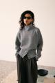 膨らみのある糸を使用し、全体的にふんわりと柔らかい印象の中に、シルエット調整の出来るタイトなウエストリブと高めの衿で、マニッシュな雰囲気もプラス。デイリーに使えるのに飽きのこないアイテム。