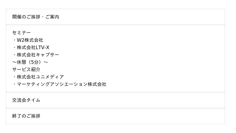 今回は、株式会社ユニメディア様、マーケティングアソシエーション株式会社から、自社サービスを紹介いたしました。