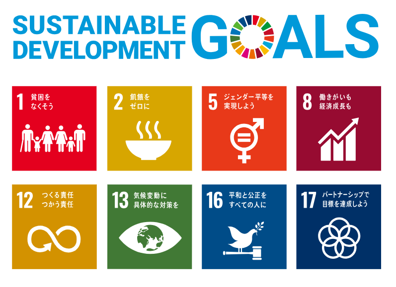 国連のSDGs(持続可能な開発目標)の17の目標全ての達成に寄与すると言われ、特に8つ(目標1貧困、目標2飢餓、目標5ジェンダー、目標8労働環境、目標12持続可能な消費と生産、目標13気候変動、目標16平和、目標17パートナーシップ)の達成に大きく寄与すると言われています。