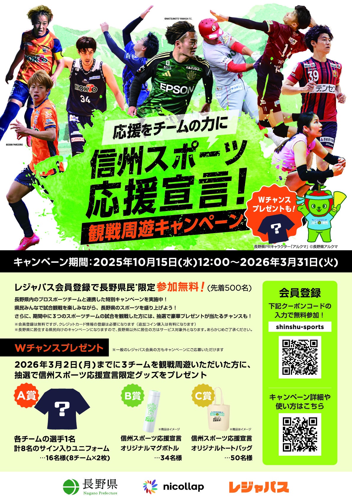 「信州スポーツ応援宣言!観戦周遊キャンペーン」概要
