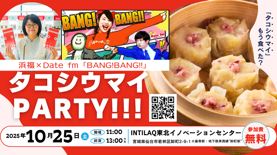 10月18日(土)~23日(木)仙台駅東西自由連絡通路で「試食販売会」を開催。10月25日(土)はDate fm人気番組「BANG!BANG!!」とのスペシャルコラボイベントも!