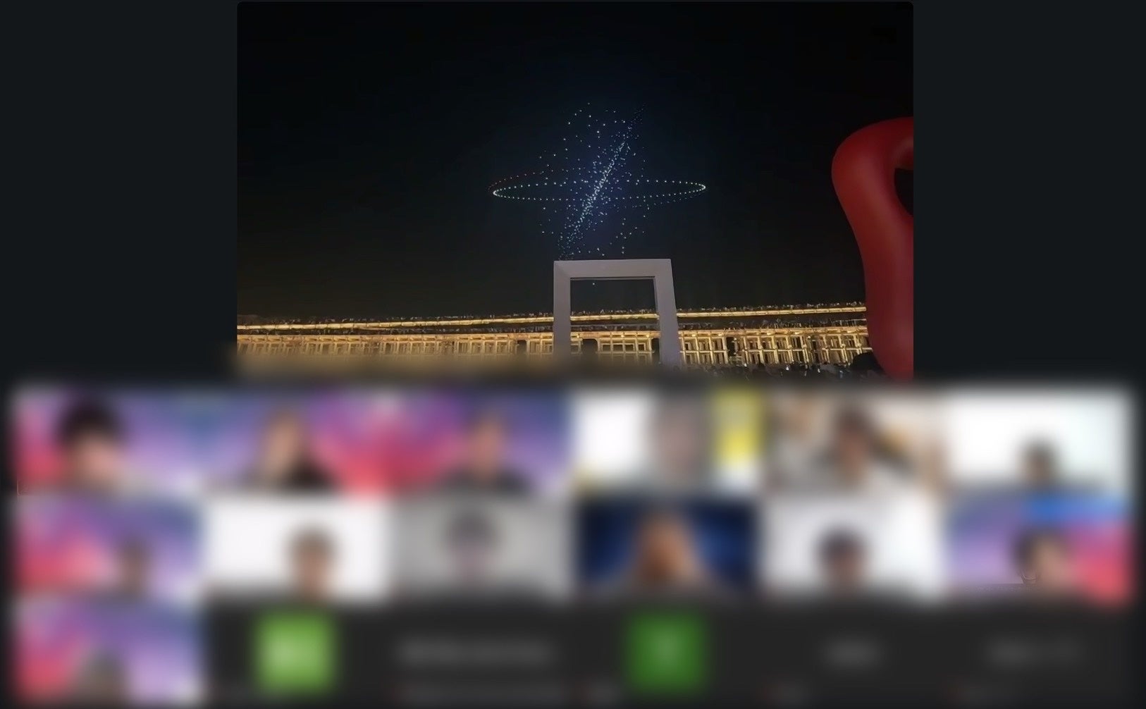 オンラインにて全国同時に万博のドローンショーを見る様子