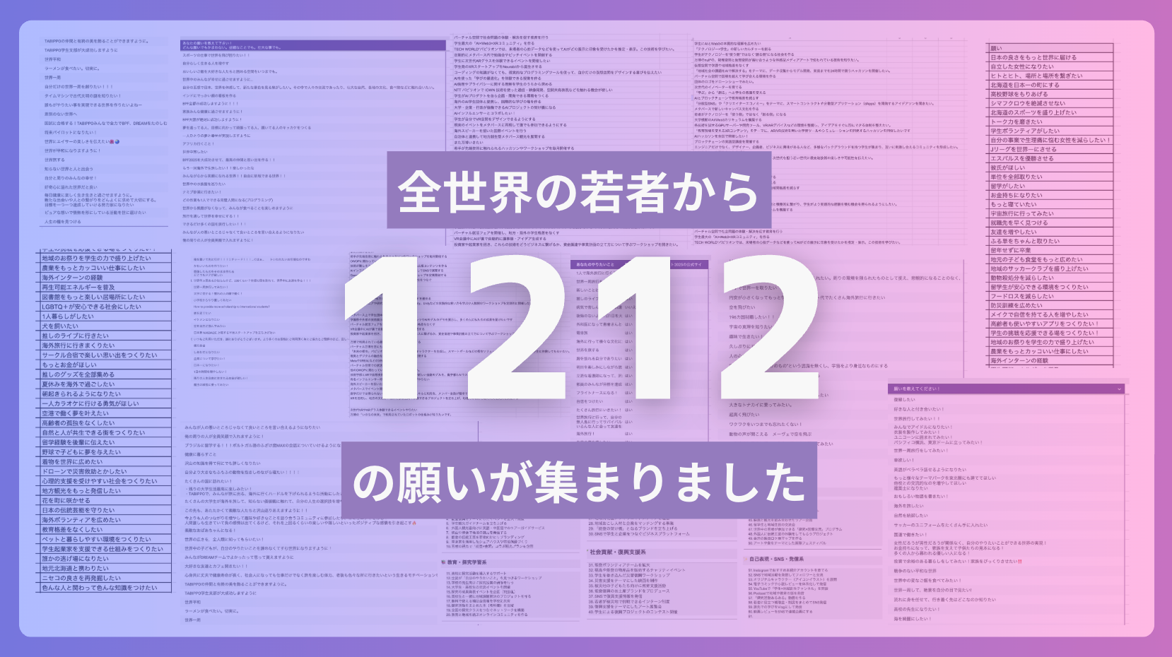 SNSやイベントを通して若者の声と願いが集まり、若者のリアルな想いを可視化しました。