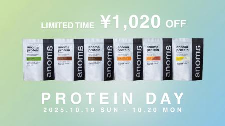 エンドウ豆を主原料とした100%植物性プロテイン「anoma(アノマ)」(本社:東京都新宿区、代表取締役社長:荒井 俊亮)は、「プロテインの日」を記念し、2025年10月19日(日)から20日(月)までの2日間限定で、公式オンラインショップの対象商品を1,020円OFFでご提供するキャンペーンを開催いたします。