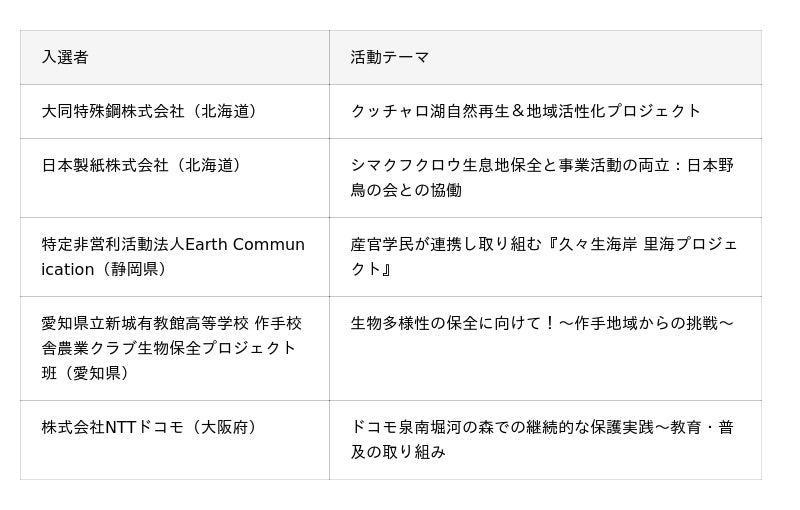 日本一の自然保護、生物多様性保全活動を選ぶ「日本自然保護大賞」。今年の授賞者は5団体