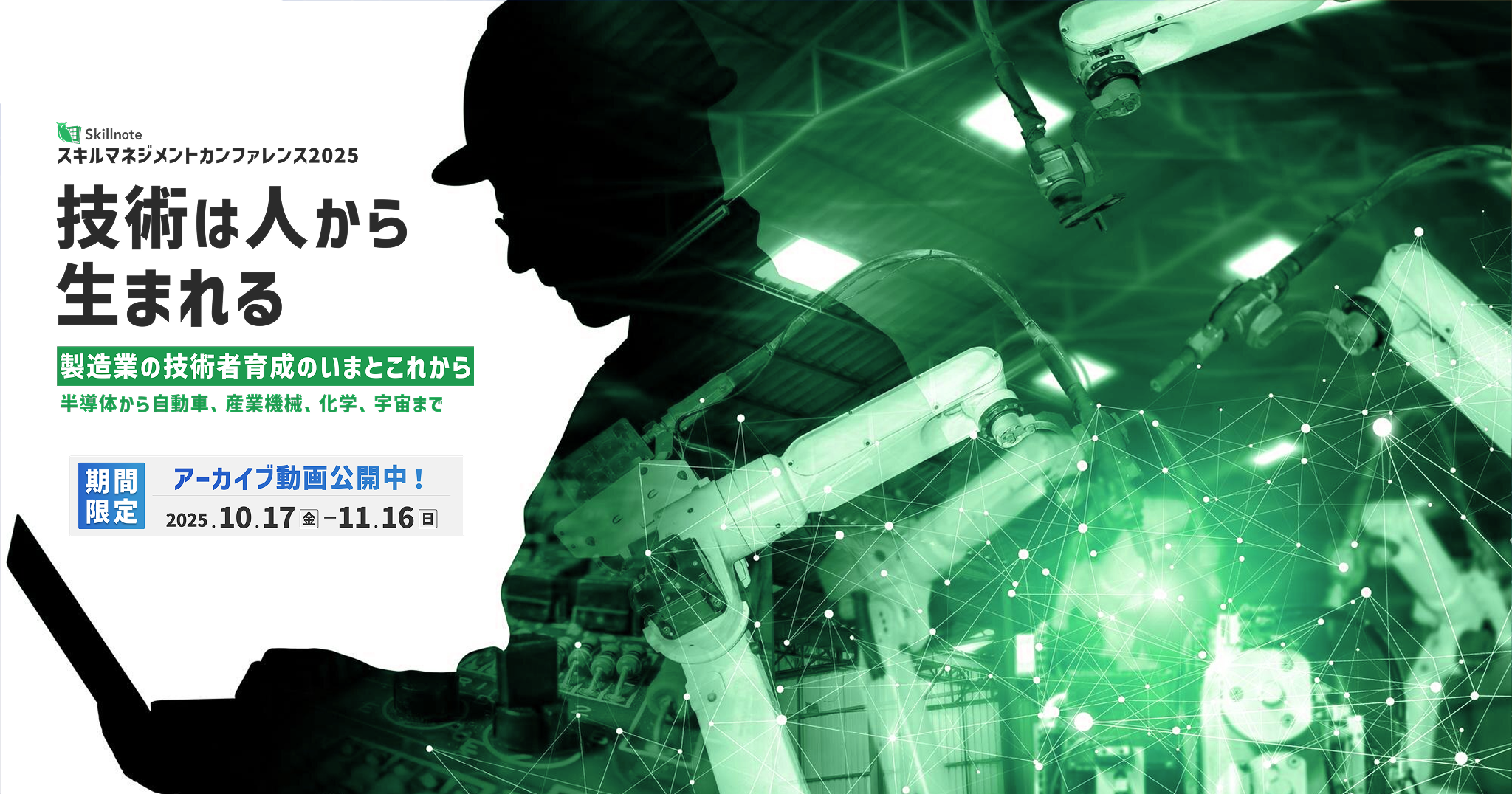 製造業の人材課題をスキルデータで解決する株式会社Skillnote(本社:東京都千代田区、代表取締役:山川隆史)は、2025年9月4日(木)に、製造業の技術者育成に関するカンファレンス「スキルマネジメントカンファレンス2025」を開催したことをお知らせします。