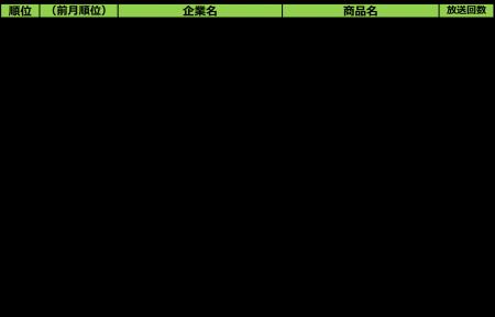 ■2025年9月度 テレビCM放送回数ランキング(東京、大阪、愛知、福岡、北海道の地上波25局、BS放送6局合計)