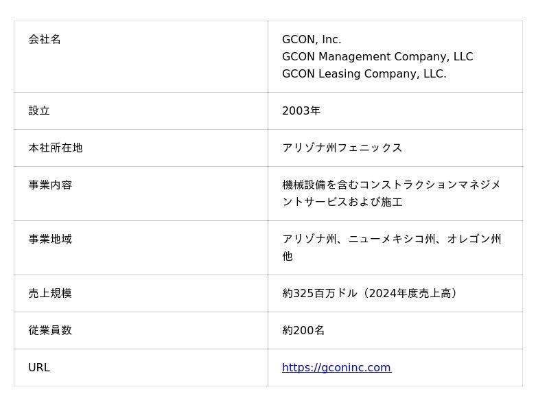 株式会社大林組(本社:東京都港区、社長:佐藤俊美)は、米国で建設事業を手掛けるグループ会社ウェブコー(本社:カリフォルニア州サンフランシスコ、社長兼CEO:Matt Rossie)を通じて、米国の建設会社「GCON, Inc.」およびそのグループ会社2社(本社:アリゾナ州フェニックス、CEO:Mike Godbehere、以下3社総称して「GCON社」)の全株式を取得することで合意しました。GCON社は、アリゾナ州をはじめ米国10州で、データセンター、半導体製造、ヘルスケア、航空、商業、高等教育、公共事業分野における建設事業を展開しています。