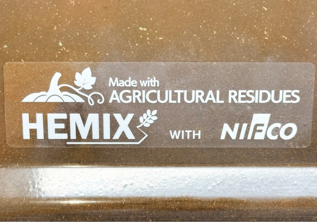「HEMIX WITH NIFCO」のステッカーが目印 ※HEMIXはヘミセルロースの登録商標です。