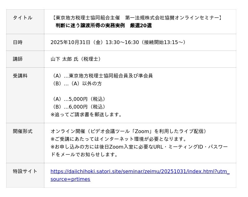 【会則研修3時間!】「判断に迷う譲渡所得の実務実例 厳選20選」オンラインセミナー 2025年10月31日(金)開催!