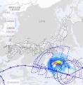 図2) ヨーロッパ中期予報センター(ECMWF)の台風経路図と降水量