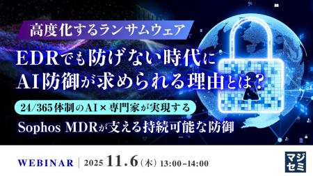 マジセミ株式会社は「高度化するランサムウェア、EDRでも防げない時代に、AI防御が求められる理由とは?」というテーマのウェビナーを開催します。