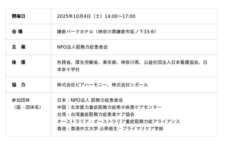 NPO法人筋無力症患者会(代表:恒川 礼子/本部:東京都)は、2025年10月4日(土)に開催された設立記念講演会をもって、「アジア・オセアニア筋無力症連絡会(Asia Oceania Myasthenia Gravis Network)」を正式に設立しました。