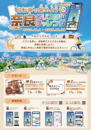 株式会社スタジオスポビー(東京都中央区、代表取締役:夏目恭行)は、奈良県との連携プロジェクト「脱炭素エキデン奈良」の一環として、奈良県の世界遺産を周遊するサイクリング企画「自転車で集めよう 奈良クリスタルチャレンジ」を2025年11月1日(土)から11月30日(日)まで開催します。
