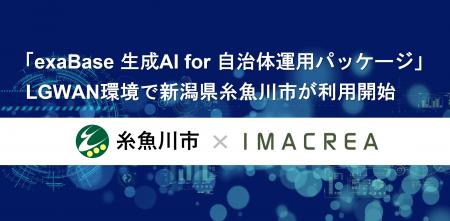株式会社イマクリエ(本社:東京都港区、代表取締役:鈴木信吾、以下、当社)は、新潟県糸魚川市において「exaBase 生成AI for 自治体運用パッケージ」(以下、本パッケージ)の提供を開始し、LGWAN環境での運用を正式に開始しました。