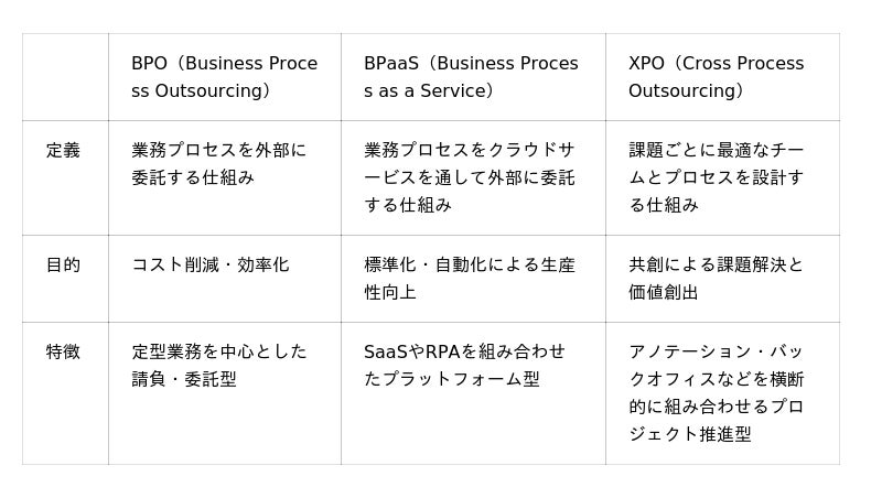 BPO、BPaaSはプロセスを効率化し、工数を削減することに重点を置いていましたが、XPOはPMが共創することで課題を解決し、新たな価値を創出するプロジェクトマネジメント型アウトソーシングです。