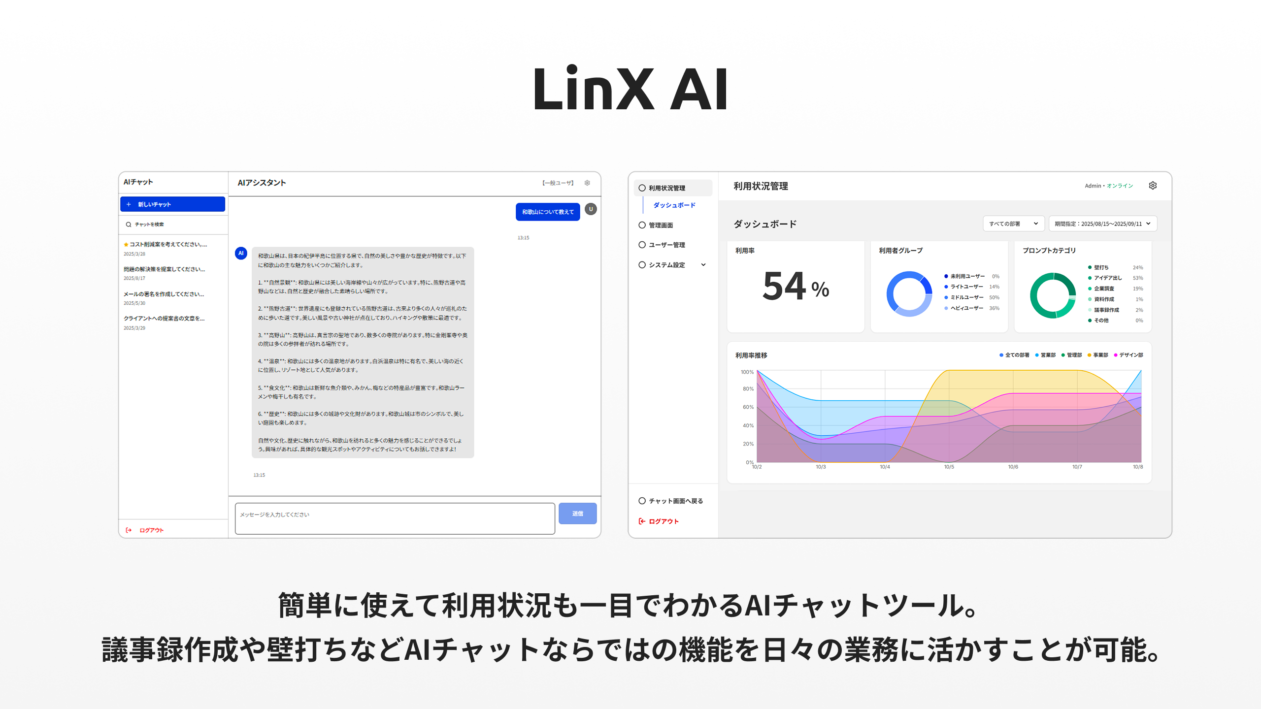 その中のひとつが、シンプルで誰でも使いやすい生成AIチャットツール「LinX AI」です。以下では、その特徴をご紹介します。
