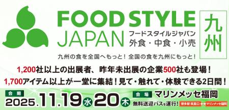 FOOD STYLE Kyushu 実行委員会(所在:東京都港区、運営:株式会社イノベント)は、2025年11月19日(水)・20日(木)の2日間、マリンメッセ福岡 A館・B館にて「FOOD STYLE JAPAN 2025 <九州>」を開催いたします。