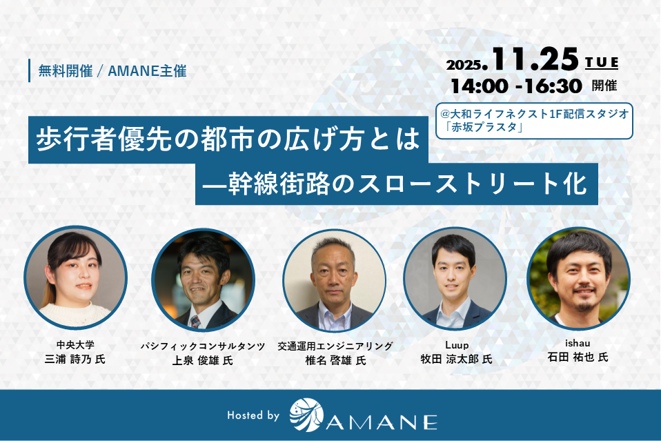 中央大・パシフィックコンサルタンツ・交通運用エンジニアリング・Luup・ishauが登壇「歩行者優先の都市の広げ方とは―幹線街路のスローストリート化」
