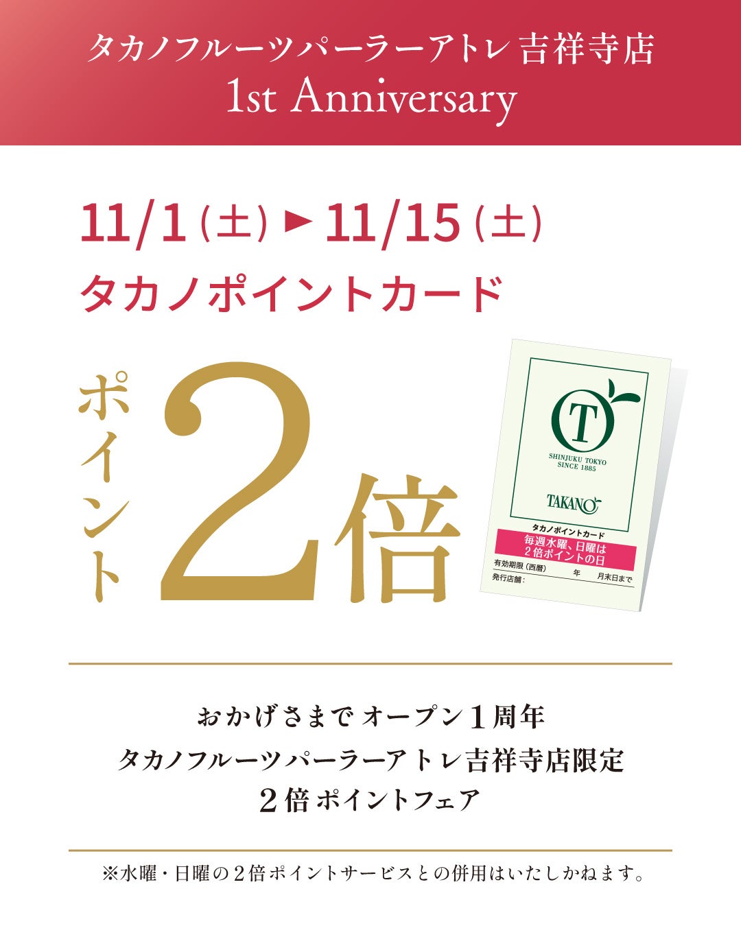 【タカノフルーツパーラー】1st Anniversaryを迎えるアトレ吉祥寺店の限定メニューと2倍ポイントフェアを開催