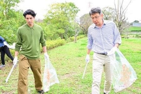 賀来賢人さん、当社社長の山田茂も参加した清掃活動の様子