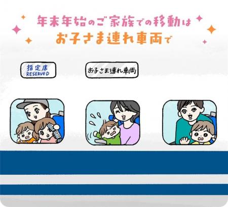 東海道新幹線「お子さま連れ車両」は、前回の年末年始に大変ご好評いただいたことを受け、今回の年末年始期間は、より多くのお客様にご利用いただけるよう、設定本数を前回より16本増やして運行いたします!
