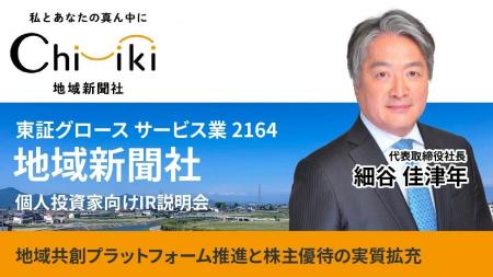 株式会社地域新聞社(本社:千葉県八千代市、代表取締役社長:細谷 佳津年、証券コード:2164、以下「当社」といいます。)は、2025年10月17日に株式会社フィスコのYouTubeチャンネル「FISCO TV」にて公開された「個人投資家向けIR会社説明会」の動画についてお知らせいたします。