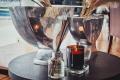 ステージサイドやホワイエにはディフューザーやキャンドルが配置され、