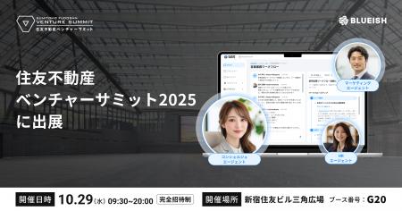 企業の生産性を飛躍させる次世代業務基盤を創る株式会社BLUEISH(東京都港区、代表取締役 為藤アキラ)は法人向けAIエージェントプラットフォーム「BLUEISH Agents」を、2025年10月29日(水)に新宿住友ビル三角広場で開催される「住友不動産ベンチャーサミット2025」に出展いたします。