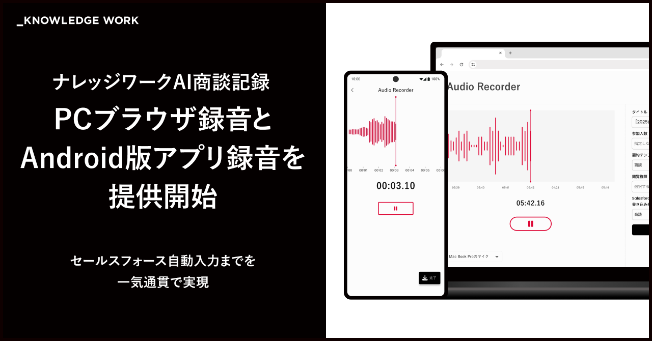 ナレッジワーク、「ナレッジワークAI商談記録」でPCブラウザ録音とAndroid版アプリ録音を提供開始。対面商談における対応デバイスを拡張