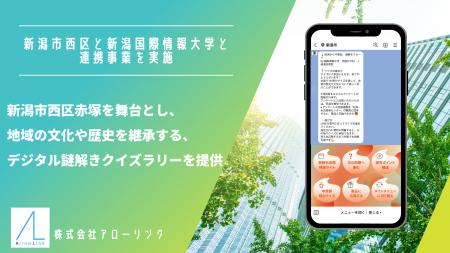 デジタルを通じて行政課題解決に伴走する株式会社アローリンク(代表取締役 蓬莱和真)は、2025年10月4日(土)~2025年10月13日(月・祝)の期間で、新潟市西区役所と新潟国際情報大学 藤田美幸ゼミナールで連携事業として実施されている「潟結びプロジェクト」にて、LINEAPIシステム「Liny」を用いた、地域の歴史や文化に関する謎解きクイズラリーの提供を行いました。