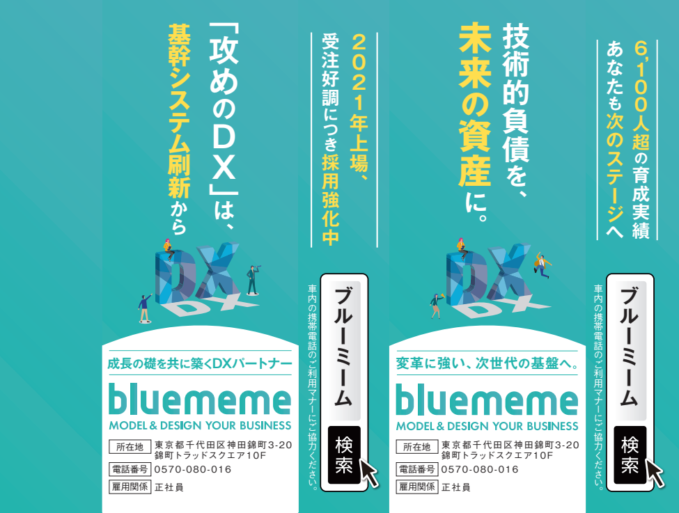 BlueMeme、都営地下鉄4線に吊手広告を掲出「攻めのDXは基幹システム刷新から」