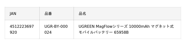 UGREEN Magflowシリーズ 10000mAh マグネット式 モバイルバッテリーを取扱開始