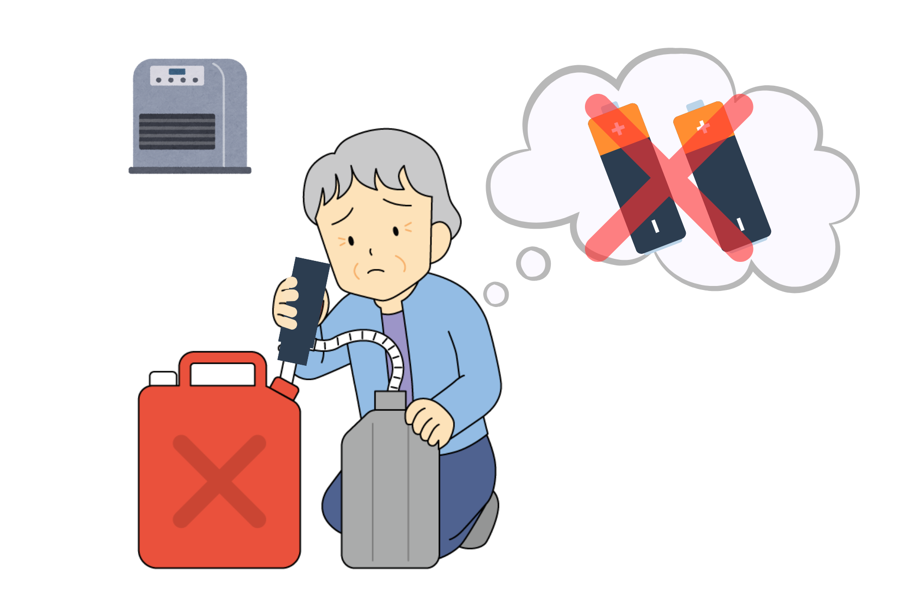 慌てて電池を買いに行くよりも早く給油できます。また、3時間で満充電でき、18Lの灯油缶であれば約45回分使用できます。