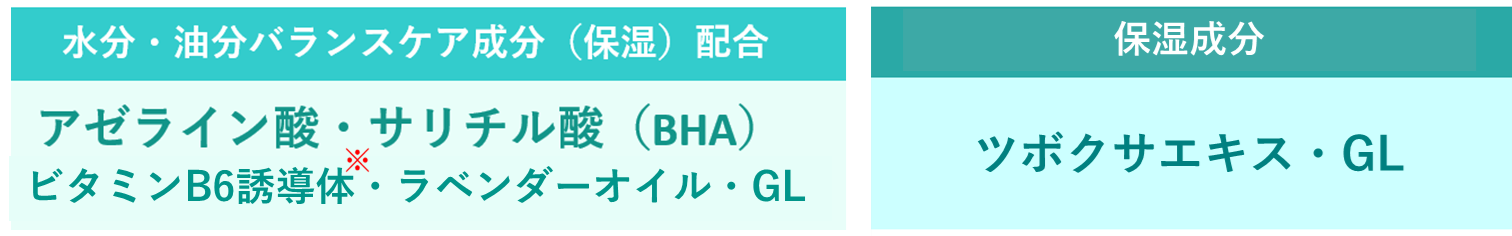 皮脂のベタつき・ニキビ跡の気になるあれがちな乾燥肌も、キメ細かな肌へ。