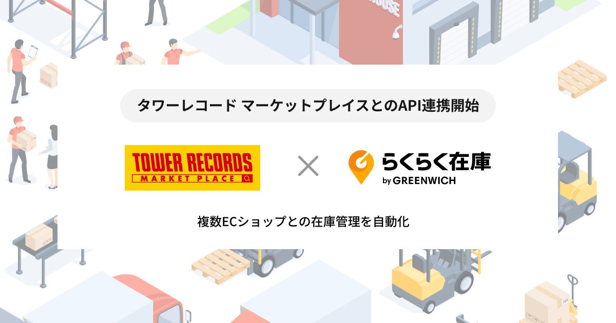 株式会社ECXグループ(本社:東京都港区、代表取締役会長:田中 裕之)の子会社でグリニッジ株式会社(所在地:東京都港区、代表取締役:田中 裕之)の提供するEC在庫管理システム『らくらく在庫』が、「タワーレコード マーケットプレイス」とAPI連携を開始しました。