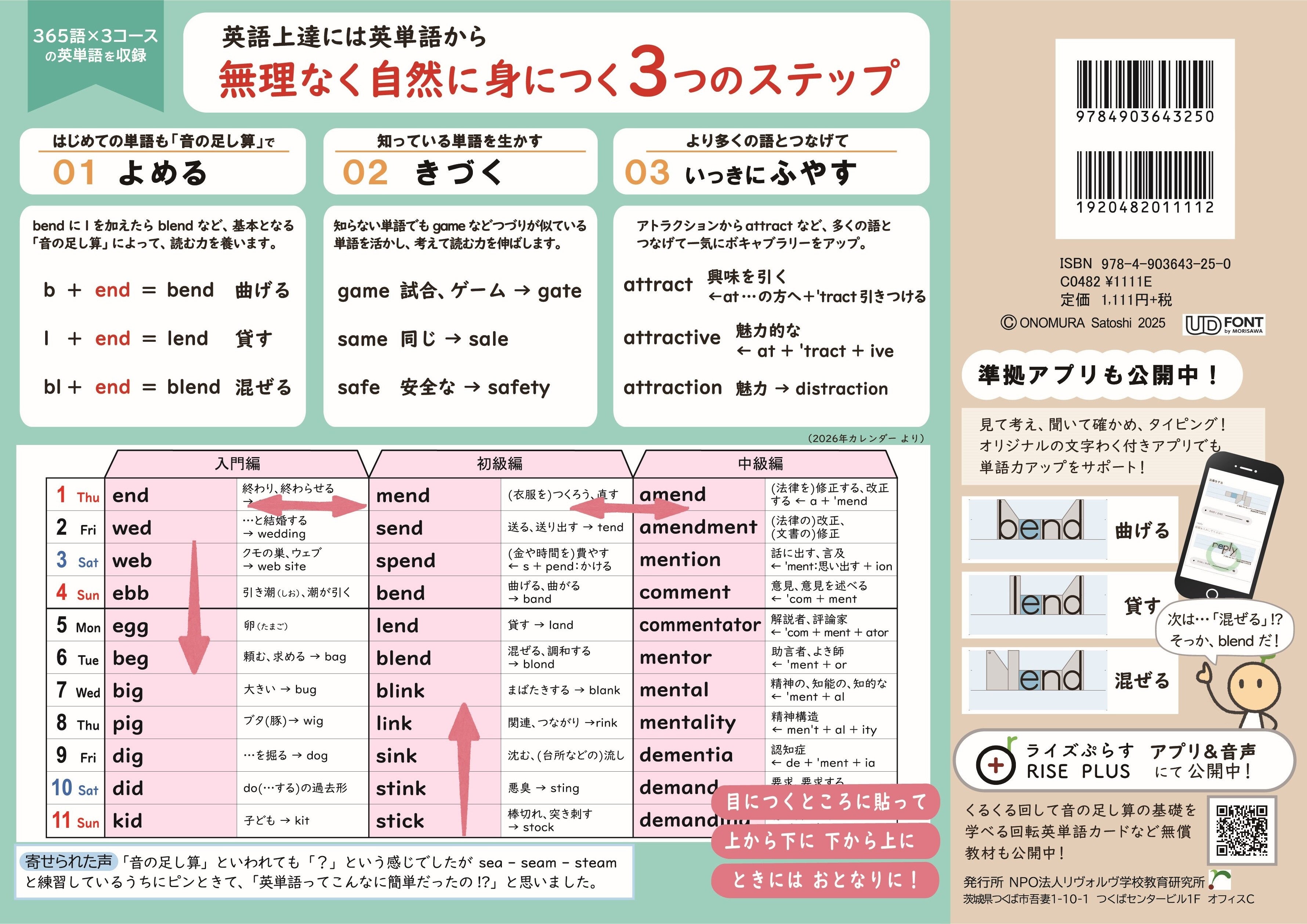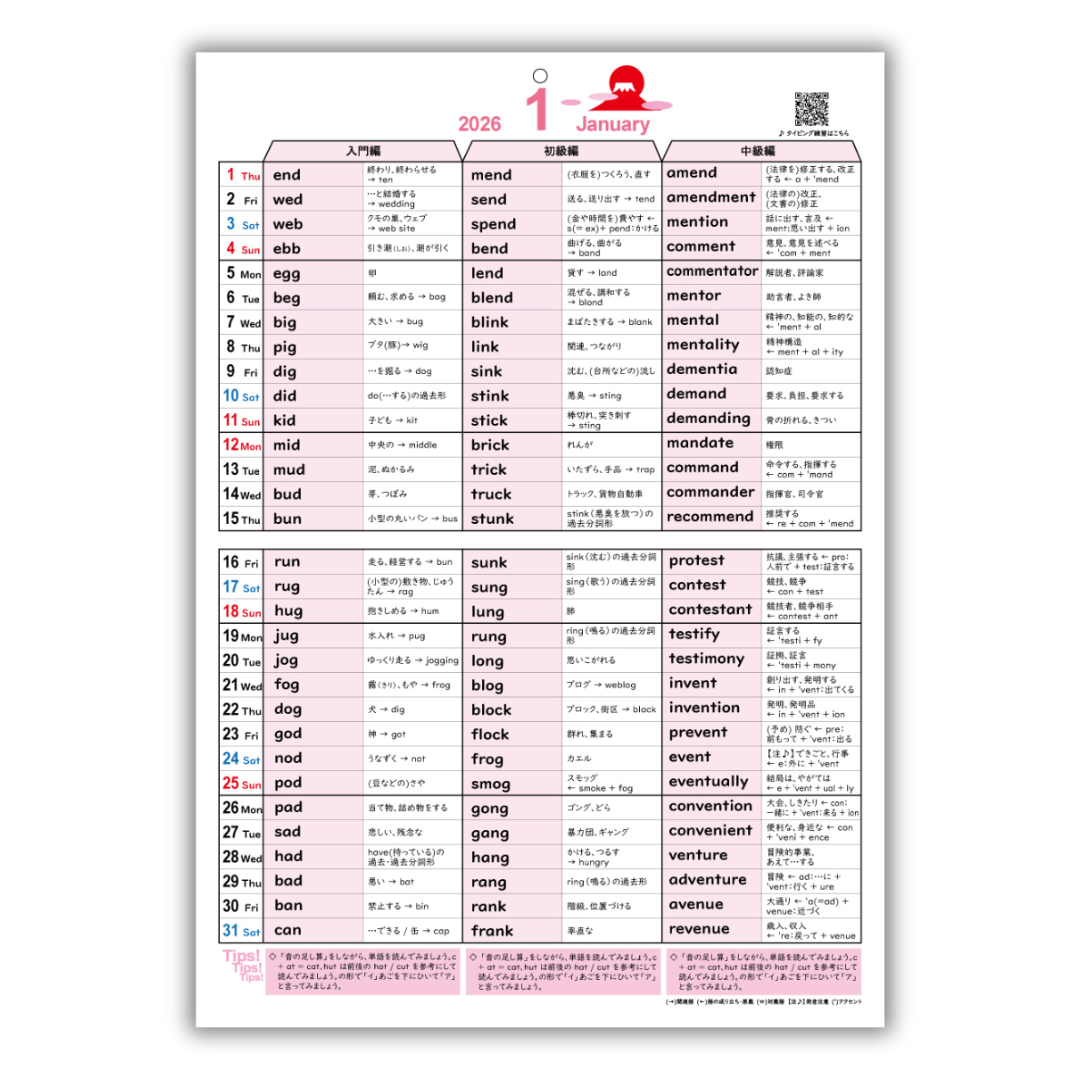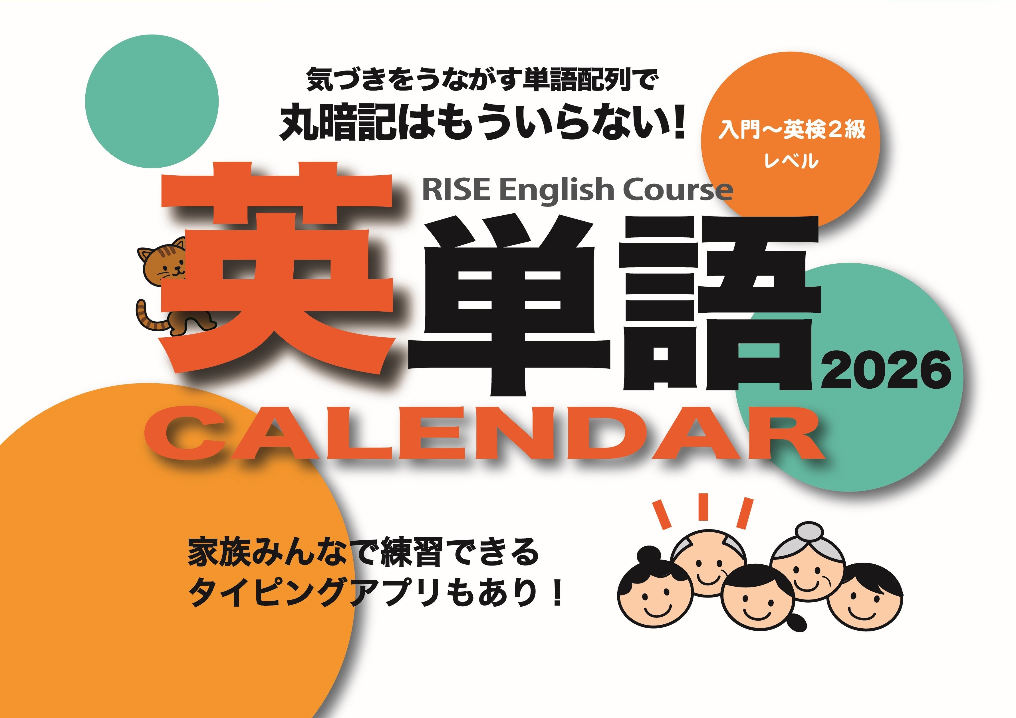 「RISE English Course 英単語カレンダー2026」は、毎日ながめるだけで英単語を楽しく学べる学習カレンダーです。
