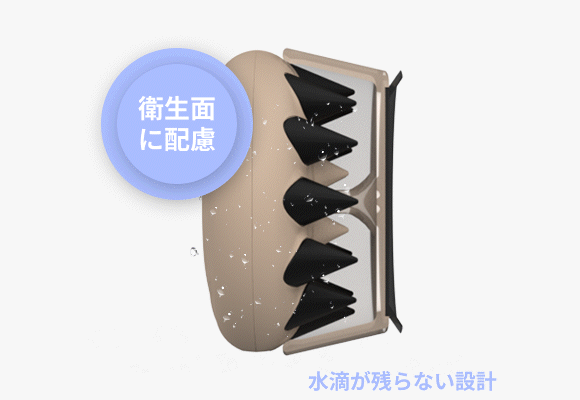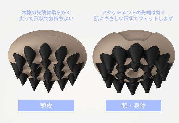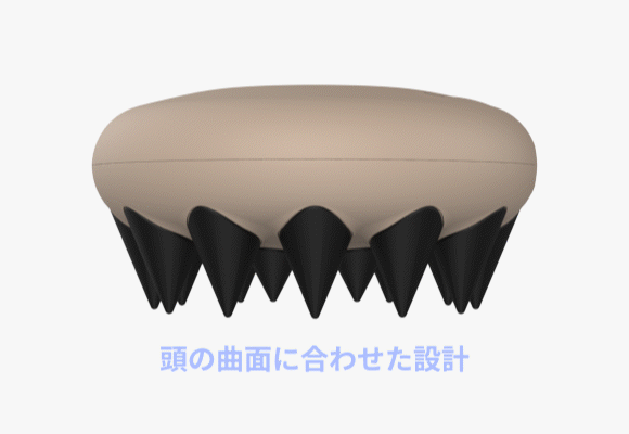 シリコン先端が頭皮の形に合わせアーチを描くように設計していることで、弾力のある18本のシリコンヘットが毛穴に残った皮脂などの汚れを音波振動と共に絞り出し手の指で洗う以上の毛穴洗浄力を得られます。