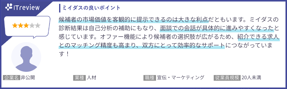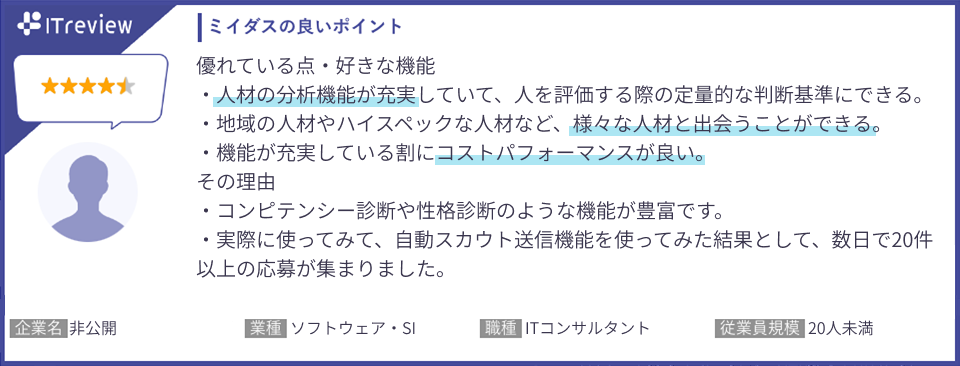 『ミイダス』をご利用いただいている皆様からは以下のようなコメントを頂戴しております。