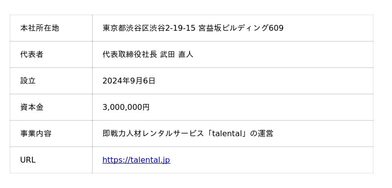 また、タレンタル社の商号および事業内容に変更はなく、既存のお取引先様との契約やサービス提供に影響はございません。