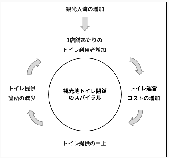 TOIMAP開発の原点となった、京都大学での研究で特定した「観光地トイレ閉鎖のスパイラル」