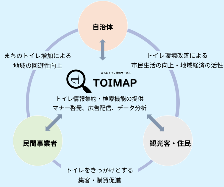 こうした独自機能を通じて、TOIMAPは、自治体、民間事業者、観光客・住民に対して 、トイレ情報DXを通じた新たな価値を提供し、トイレを「コスト」から「資産」へと変貌させることを目指しています。